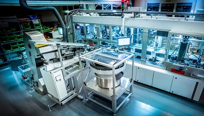 Lanzaderas controlables de manera individual con protección contra colisiones Las lanzaderas que sujetan los portapiezas personalizados se guían a través de estaciones de procesamiento ubicadas alrededor de la pista ovalada