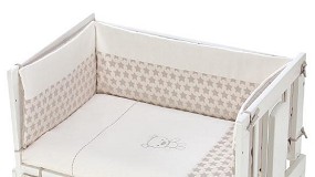 MDF. Regulable en cinco posiciones de altura, de 43 a 61 cm. Barandilla abatible para utilizarse como colecho. Cuenta con cinco opciones de uso: minicuna colecho, minicuna balancín, sofá, escritorio