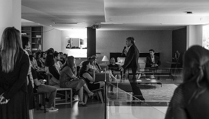 mesitas para las sesiones de asesoramiento individual. También aporta las sillas que rodean la gran mesa de comedor. De Viccarbe son las mesas de la oficina del equipo del centro