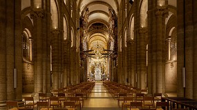 moldura. Y resulta que la luz que entra es poca, y muy concentrada en cuatro puntos, los rosetones altos en los testeros de la nave principal y transepto, y la linterna