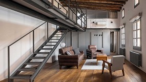 parquet de madera natural para el pavimento de ambas plantas que, junto con la cubierta de vigas de madera original, aportan carácter y calidez. El resto de los materiales son silenciosos