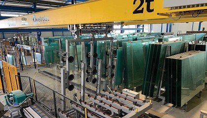 puente con ventosas a doble cara; 7. Puente de grúa automatizado. Vetrotec cuenta con tres tipos de almacenes inteligentes: Aéreos, Shuttle y Caballetes móviles, tanto para hojas jumbo, regular, mixta