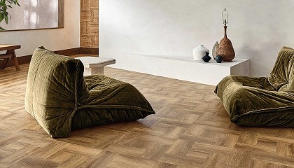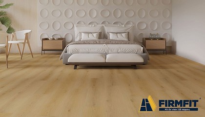 Roble Premium y baldosas que se mimetizan con el entorno. A diferencia de otros suelos impermeables, Firmfit tiene un núcleo a base de piedra caliza que le da una resistencia