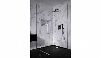 rociador, una ducha emocional con cromoterapia, panel táctil e iluminación interna. Una solución que se adapta a cualquier entorno, gracias a la versatilidad de su instalación en esquina o empotrada