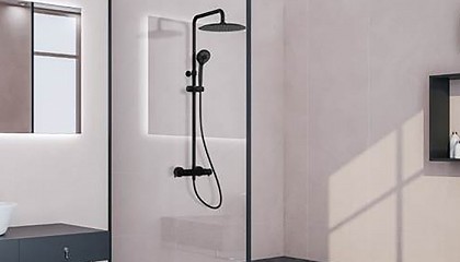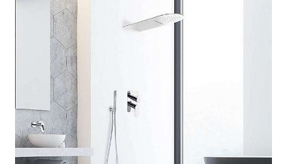 rociador mural en formato redondo de 240 mm de diámetro y una ducha de mano con soporte, toma de agua y flexo. Redacción Interempresas KIT Blautherm termostático empotrado 948712RP240NM acabado