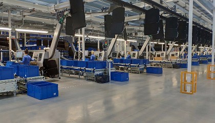 shuttles, un sistema compacto de transporte de contenedores y cajas de cartón, estaciones de picking, packing y servicios de valor añadido. La empresa de moda amplía su capacidad logística con un almacén