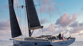 tapicería en tonos blancos, grises y azules. Cabina del propietario. Zona de descanso con sofá y escritorio que conecta las dependencias de proa con popa. El casco, la cubierta, la estructura