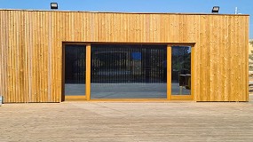 tarima Luna Deck y perfiles de 92 x 42 cm., todos ellos materiales duraderos y no tóxicos, para las fachadas y el entarimado del atrio de La Pinada Lab. Este