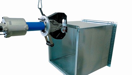 tirador y de la conexión hidráulica giratoria para facilitar la manipulación del cabezal de trabajo con una sola mano y sin apenas esfuerzo. Instalación clinchadora portátil. Gama de útiles Rivclinch