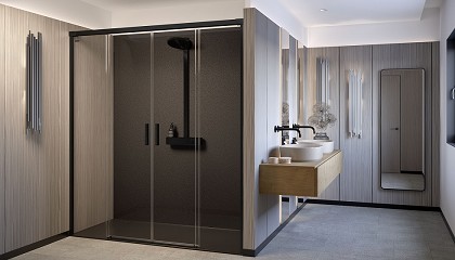 tiradores elegantes y actuales. De este modo, la mampara ajustable cuenta con un margen de adaptación de hasta -50 mm, que le permite salvar desniveles tanto en suelos como en paredes