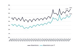 Top 10 sectores con menor absentismo en el primer trimestre de 2025. Fuente: Randstad Research e INE. Top 10 sectores con menor absentismo en el primer trimestre de 2025. Fuente