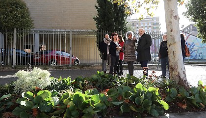 cebra elevado en la misma calle para crear una zona de prioridad peatonal y se ha mejorado el arbolado manteniéndolo a porte natural para no realizar tantas podas y generar