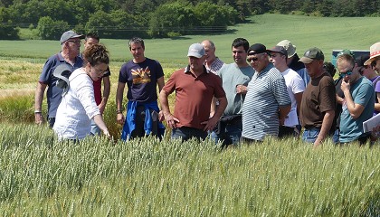 Cabanillas, Tafalla, Ilundáin o Valle de Egües. Asistentes a la jornada de transferencia organizada por INTIA. Los ensayos visitados en esta jornada se centran en comparar distintas variedades de guisante