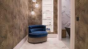 biombos fijos con forma de ventanas mallorquinas. Este particular espacio acoge el inodoro suspendido de la nueva serie Acanto, que destaca por sus delicadas formas exteriores y el diseño Geberit