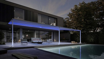calefactores y la función ‘súper-sombra‘, también parcialmente con toldos verticales. El toldo está disponible en siete colores estándar y también en colores especiales. En la colección de lonas markilux