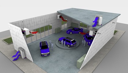 calefactores de generación anterior provoca una gran estratificación del aire, con diferencias de temperatura medidas entre la altura de funcionamiento y el techo superiores a 10 °C, lo que genera