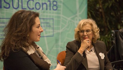 Carmena; el delegado de Participación Ciudadana, Transparencia y Gobierno Abierto, Pablo Soto; el coordinador general de Alcaldía, Luis Cueto y la regidora de Participación del Ayuntamiento de Barcelona, Gala Pin, entre