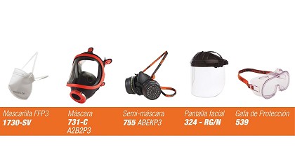 dolomita ofreciendo una mayor resistencia a la obstrucción del filtro. Estas mascarillas también están disponibles con válvula de exhalación, que ofrecen un mayor confort. Gafas y pantalla facial En estos