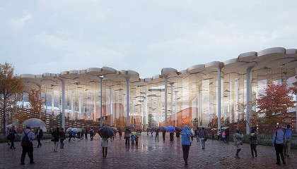 dosel similar a un bosque de ginkgos. Cada columna arbórea supone también un componente tecnológico del edificio, lo que da lugar a un sistema tecnológico distribuido que se ocupa de la climatización