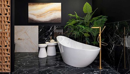 Grifería, disponible en cuatro acabados –negro, cromo, brushed PVD Gold y brushed metal– con el objetivo de facilitar la integración del producto en ambientes muy diversos, desde propuestas minimalistas hasta
