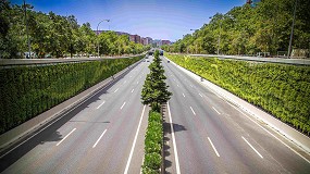 Jardín vertical de la M-30. En el espacio expositivo instalado en la Plaza de Callao de la capital, Lantania Infraestructuras exhibe un módulo que representa el jardín vertical construido