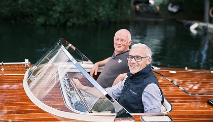 lancha clásica de motor central con un solo propulsor – muy diferente de los productos de propulsión por agua que producimos hoy. Nos inspiramos en Riva en aquel entonces, y ahora