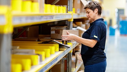 lanzaderas SSI Cuby con 174 unidades y 87.000 ubicaciones de almacenamiento. Almacén automatizado de piezas pequeñas con 45.000 ubicaciones y más de 2.800 canales en sistemas A-Frame. Estaciones de picking