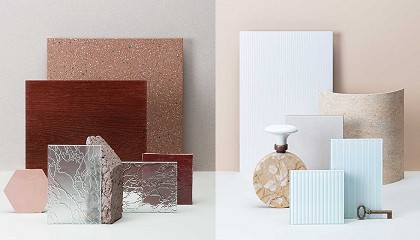 mamparas de ducha. Modelo de vidrio decorativo Imagin Dominos, de AGC. Una gama sostenible Por último, pero no por ello menos importante, la gama de vidrio impreso de AGC se produce