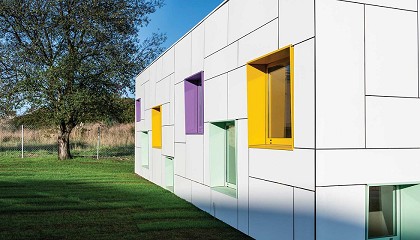 mosaico han sido claves para la elección de los paneles para fachada Trespa en el centro escolar de Polanco. Además, su durabilidad frente a la humedad, los rayos UV y los cambios