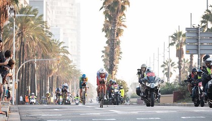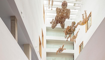 nadadores que flotan y se sumergen entre el mar Mediterráneo y el cielo. Un auténtico espectáculo visual, lleno de dinamismo, que no deja a nadie indiferente, obra de Ramón de los Heros