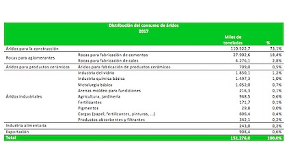 ofita (1,1%). Entre todas éstas, representan el 90,9% del consumo. En cuanto a los áridos para otros usos industriales, los más empleados son la caliza (70,4%), las margas