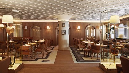 Philippe Starck une dos espacios mediante un vínculo matérico en tonalidades tostadas. El suelo de madera Naturfloor-W de roble americano aporta una belleza y carácter arraigados junto a una contemporaneidad
