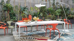 pufs y mesas con diferentes acabados. Uni, también diseñada por Héctor Serrano, se trata de una colección de mesas con estructura de aluminio de diferentes colores y con tableros fabricados