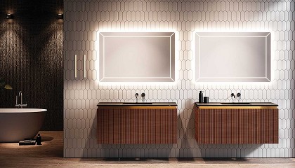 reviste todo su perímetro y actúa como elemento distintivo. Este acabado puede resolverse en versión metálica, lacada en cualquier color o en madera natural, adaptándose a diferentes estilos de proyecto