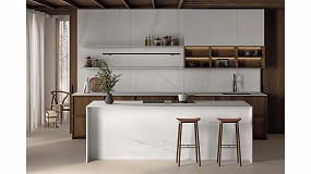 Silestone suma también criterios de sostenibilidad y economía circular, gracias a la nueva tecnología HybriQ de Cosentino. Así, el icónico Silestone Blanco Zeus protagoniza, mediante su aplicación en barras e islas