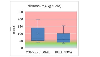 suelo. Comparación del contenido en suelo de Nitrógeno total, Fósforo por el método Olsen y Potasio asimilable bajo manejo convencional y con Bulhnova. Suelo más vivo, suelo más productivo Más allá