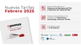 tarifas de sistema de bandejas y tubos - 17/01/2025: Además de actualizar los precios y la disponibilidad de productos, las nuevas tarifas incorporan nuevas soluciones que amplían el portafolio de Pemsa