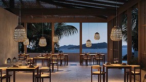 tela antes del cosido final. Este gesto, convertido en elemento constructivo, da forma a un trenzado que envuelve las luminarias y les confiere una identidad visual ligera y dinámica. Gracias
