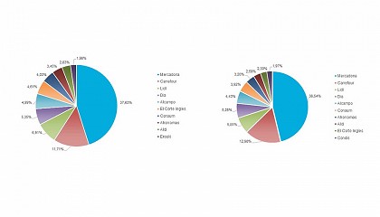 Carrefour, con un 12,98%; Lidl, con un 5,81%; y Día, con un 5,25%. Estas cuotas de mercado se mantienen a grandes rasgos en la misma línea que la semana