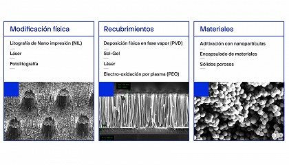 nano partículas de ZnO y TiO 2 que previenen la formación de biofilm. Encapsulado de materiales. El encapsulado de sustancias permite dispersar compuestos en estado líquido de forma homogénea en el interior de sólidos para dotarlos de propiedades antibacterianas. Así, por ejemplo, Tekniker ha conseguido la dispersión de microcápsulas (figura 6, derecha) de pigmentos en distintos materiales para dotarlos