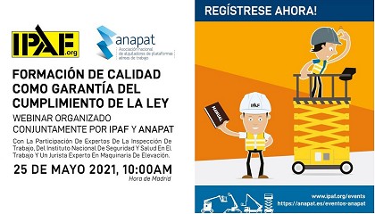 PEMP el 25 de mayo - 27/04/2021: Anapat e Ipaf celebrarán un webinar sobre la formación de operadores de PEMP el 25 de mayo Anapat e Ipaf (International Powered Access Federation