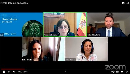 Salva Bravo Nebot Imagen de los participantes en el debate. Los participantes en la charla fueron Francisca Baraza, comisionada del Ciclo del Agua y Restauración de Ecosistemas del Miteco; Sofía