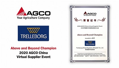 Trelleborg, premiado en el evento de proveedores virtuales de AGCO China 2020 - 19/11/2020: Trelleborg, premiado en el evento de proveedores virtuales de AGCO China 2020 Trelleborg Wheel Systems recibió el premio