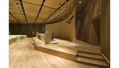 atriles diseñados especialmente para las salas de conferencias renovadas y un par de esbeltas mesas de perfiles aerodinámicos. Islas de estudio Se instalaron islas de estudio formando tres filas en el vestíbulo