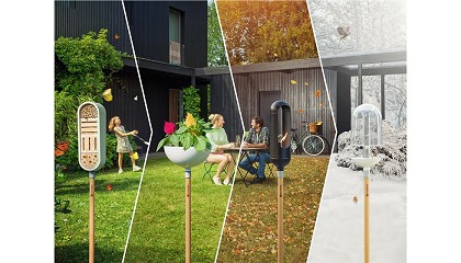 balcones y terrazas. Permite regar hasta 20 plantas sin conexión eléctrica ni de agua, gracias a su panel solar, batería recargable, bomba integrada y depósito de 10,5 litros (ampliable