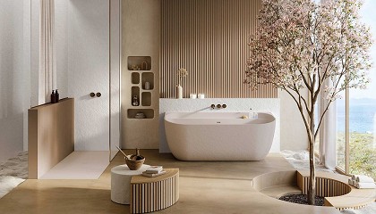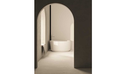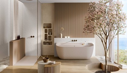 bañeras: Nevis, una bañera exenta con líneas esculturales que se convierte en el centro visual del espacio, y Volda, una versión semi exenta que combina funcionalidad y confort sin renunciar