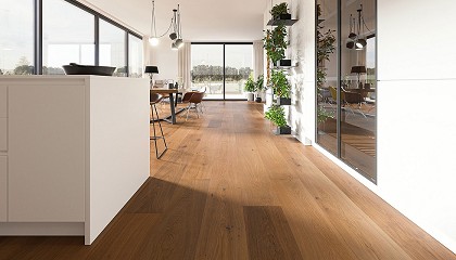 barniz de poliuretano alifático base agua weberfloor Aqua Protect 2C Mate, seguido del acabado con weberfloor Decopur Protect 1C Mate, un barniz transparente de poliuretano que proporciona un diseño acogedor