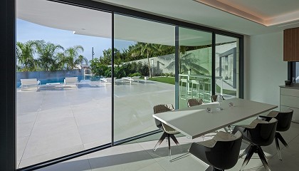 Bergamo de RGB Arquitectos, se ha empleado silicona Sikasil SG 500 para unir y sellar el vidrio y el marco. Fotógrafo; Wenzel. Los cartuchos de Sikasil SG-500 facilitan los trabajos