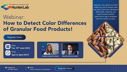 color y tueste en frutos secos, snacks y legumbres’ - 02/06/2025: HunterLab organiza el webinar gratuito ‘Control de color y tueste en frutos secos, snacks y legumbres’ El color no solo