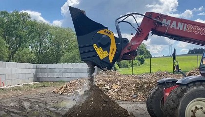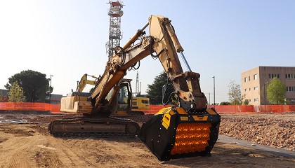 cribadora de estrella se instaló en una Caterpillar 315. Cuchara de rotores MB-HDS314, en Italia. Hay otros 10 modelos de cucharas seleccionadoras, para máquinas operadoras de 1,3 a 45 toneladas